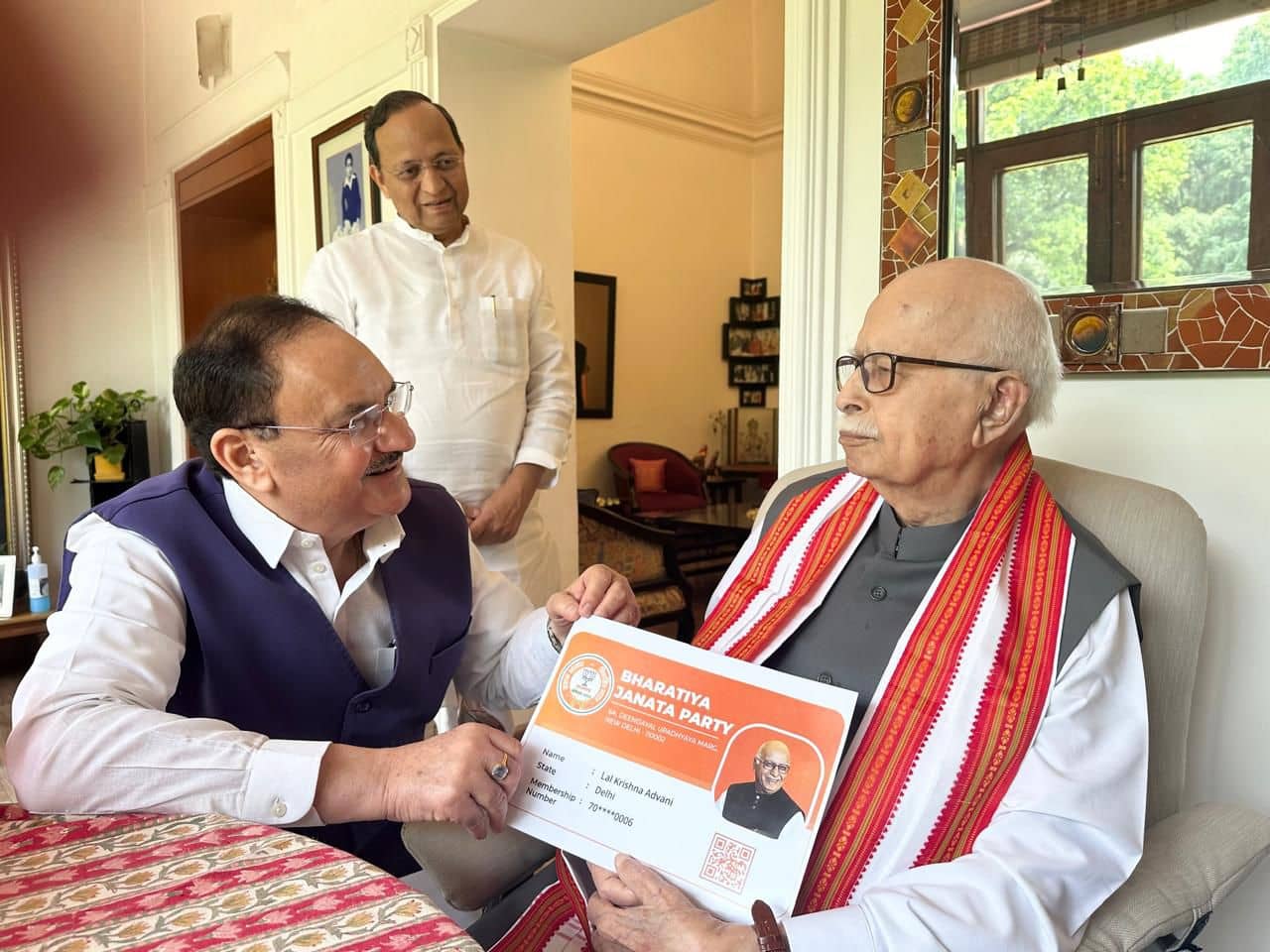 भारतीय जनता पार्टी के वरिष्ठ नेता लालकृष्ण आडवाणी को उनके आवास पर जाकर बीजेपी राष्ट्रीय अध्यक्ष जेपी नड्डा ने राष्ट्रीय सदस्यता अभियान के तहत सदस्यता के नवीनीकरण की प्रति दी।