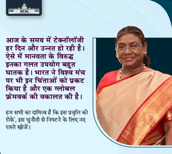 President Murmu Parliament Address: राष्ट्रपति द्रौपदी मुर्मू बोलीं- आज के समय में टेक्नॉलॉजी हर दिन और उन्नत हो रही है। ऐसे में मानवता के विरुद्ध इनका गलत उपयोग बहुत घातक है।