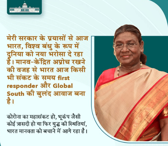 Droupadi Murmu Address Update: कोरोना का महासंकट हो, भूकंप जैसी कोई त्रासदी हो या फिर युद्ध की स्थितियां, भारत मानवता को बचाने में आगे रहा है।