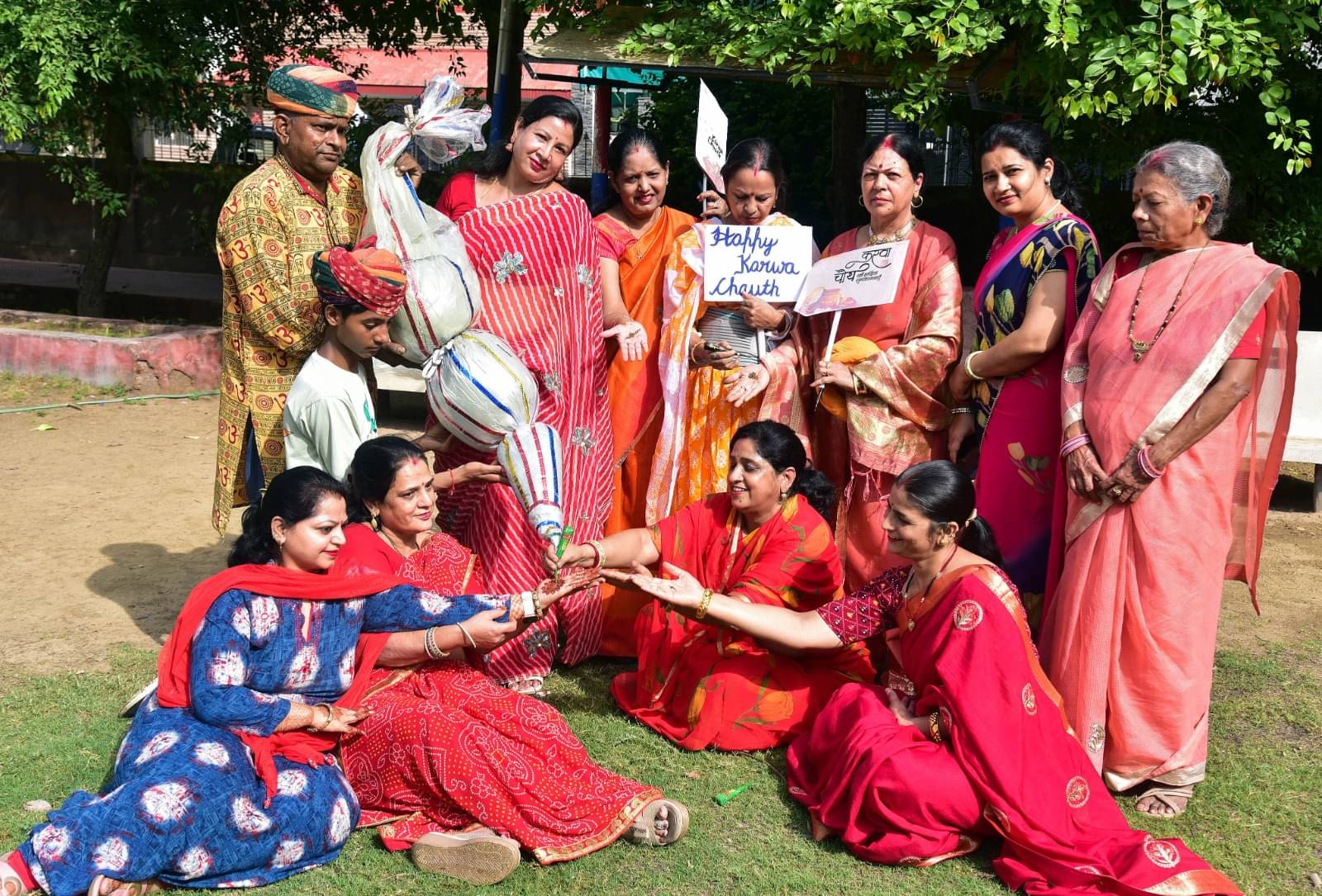 उत्तराखंड: देहरादून में महिलाएं करवाचौथ की रस्में कर रही हैं।