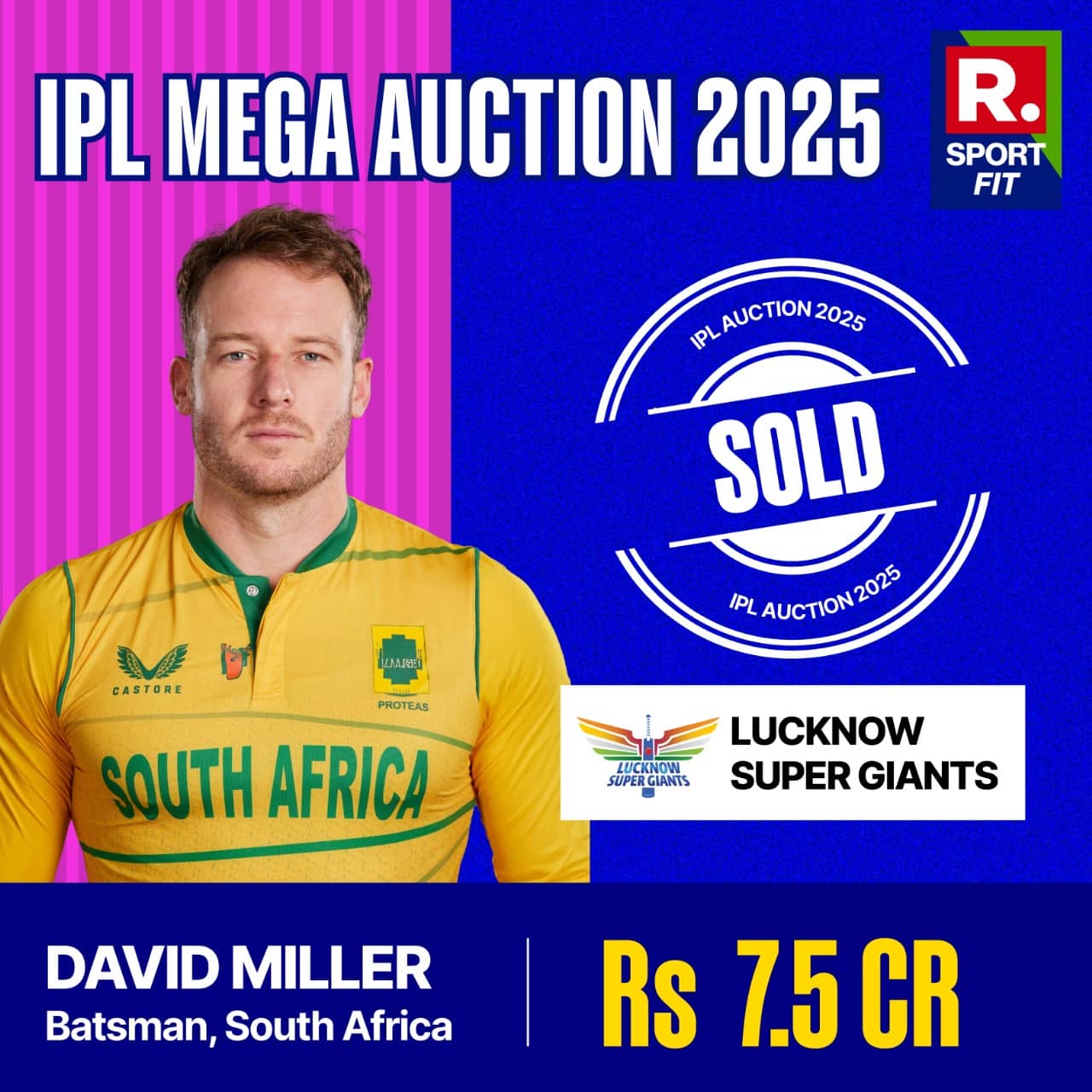 डेविड मिलर को लखनऊ ने 7.50 करोड़ में खरीदा