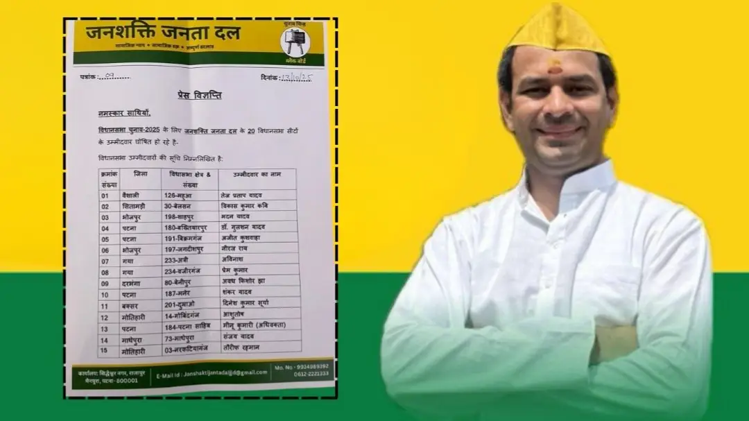 तेज प्रताप महुआ सीट से लड़ेंगे चुनाव, महागठबंधन से पहले जनशक्ति जनता दल ने जारी की उम्मीदवारों की फर्स्ट लिस्ट