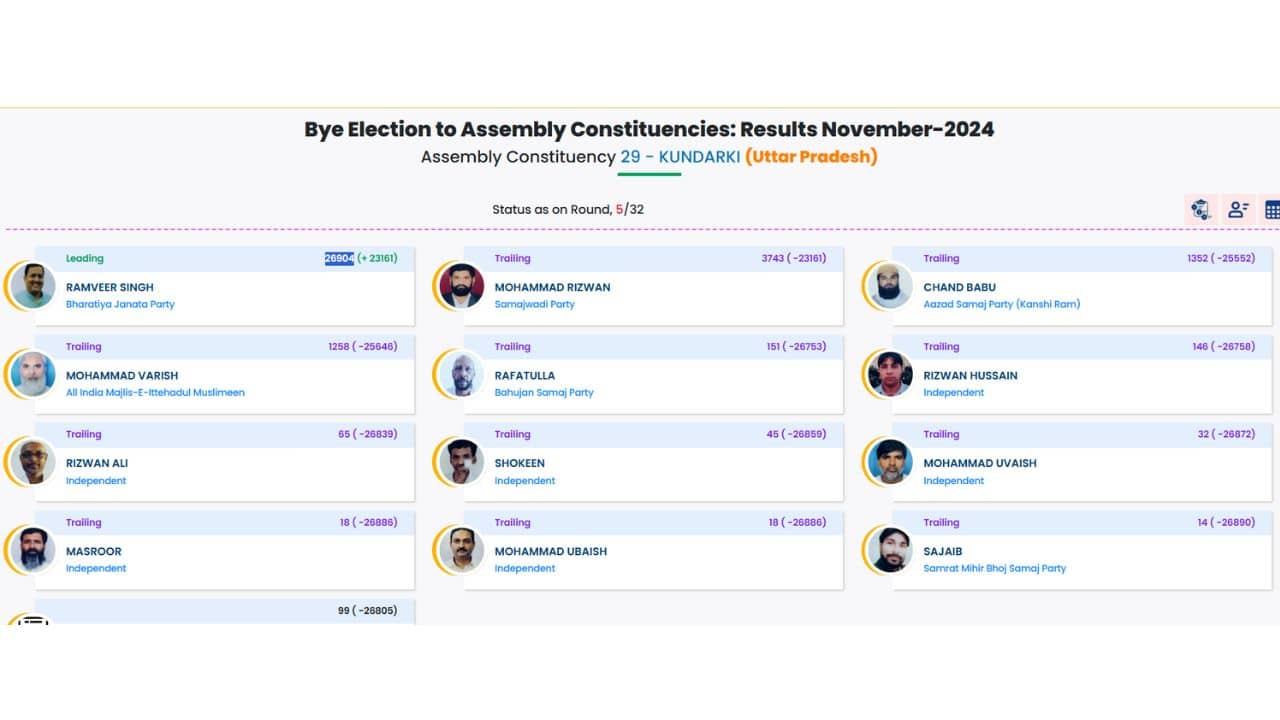 UP Bypoll Results : कुंदरकी में BJP आगे