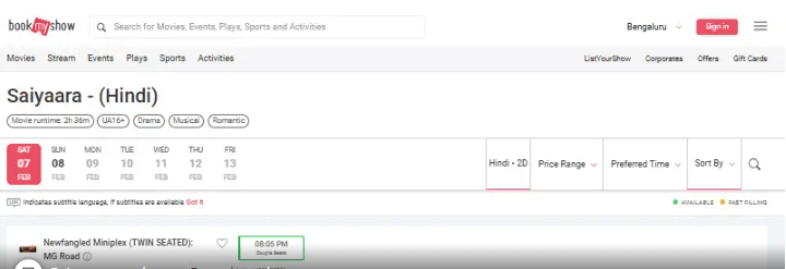 बुक माय शो के मुताबिक सैयारा को मुंबई, दिल्ली, बेंगलुरु और पुणे जैसे बड़े शहरों में दोबारा रिलीज किया गया है। मुंबई में फिल्म के वीकेंड शोज रखे गए हैं, जबकि दिल्ली में दर्शक बुधवार तक इस रोमांटिक फिल्म का दोबारा आनंद ले सकते हैं। री-रिलीज के लिए टिकट की कीमतें सामान्य रखी गई हैं।