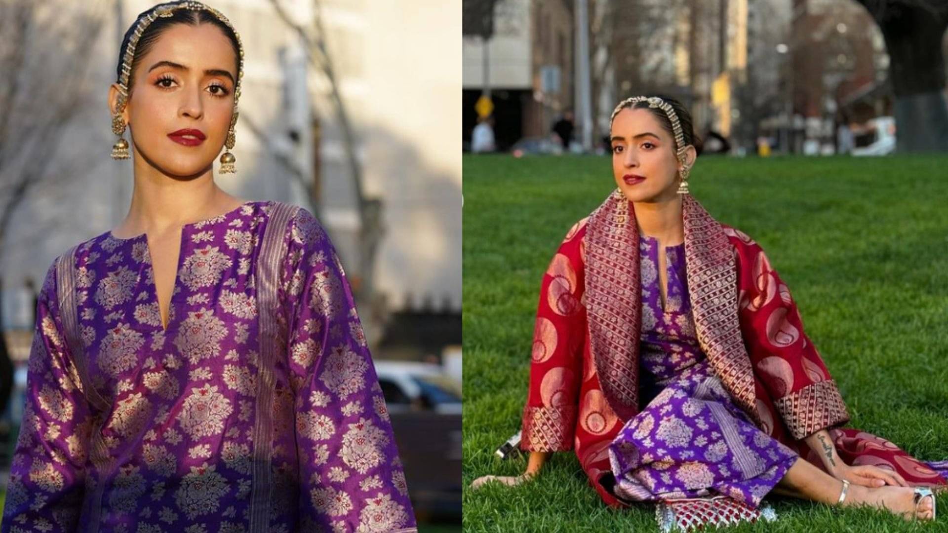 Sanya Malhotra IFFM: मेलबर्न में आयोजित 15वें भारतीय फिल्म फेस्टिवल (आईएफएफएम) में अभिनेत्री सान्या मल्होत्रा ने अपनी फिल्म "मिसेज" के प्रीमियर पर अपनी मां रेनू मल्होत्रा की डिजाइन की हुई ड्रेस पहनी। सान्या ने सोशल मीडिया प्लेटफॉर्म इंस्टाग्राम पर एक पोस्ट में अपनी कुछ तस्वीरें शेयर की हैं, जिसमें वह बैंगनी रंग के ब्रोकेड के आउटफिट में नजर आ रही हैं। उन्होंने इसके साथ लाल रंग का ब्रोकेड ओवरकोट भी पहना है।