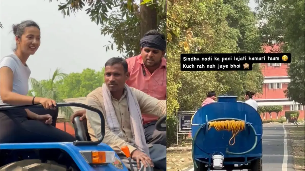 ये वीडियो खुशबू पाटनी ने सोशल मीडिया हैंडल पर कुछ ही देर पहले अपलोड किया है। इस वीडियो में दिख रहा है कि कैसे वो एक पानी के टैंकर वाले ट्रक से लिफ्ट मांगती हैं और फिर उसपर बैठकर चली जाती हैं। इस वीडियो को शेयर करते हुए उन्होंने मजाक में कैप्शन में लिखा- “सिंधु नदी का पानी ले जाती हमारी टीम। ट्रैक्टर में पहली बार बैठी”। इसके साथ खुशबू पाटनी ने हंसने वाली इमोजी भी लगाई है।