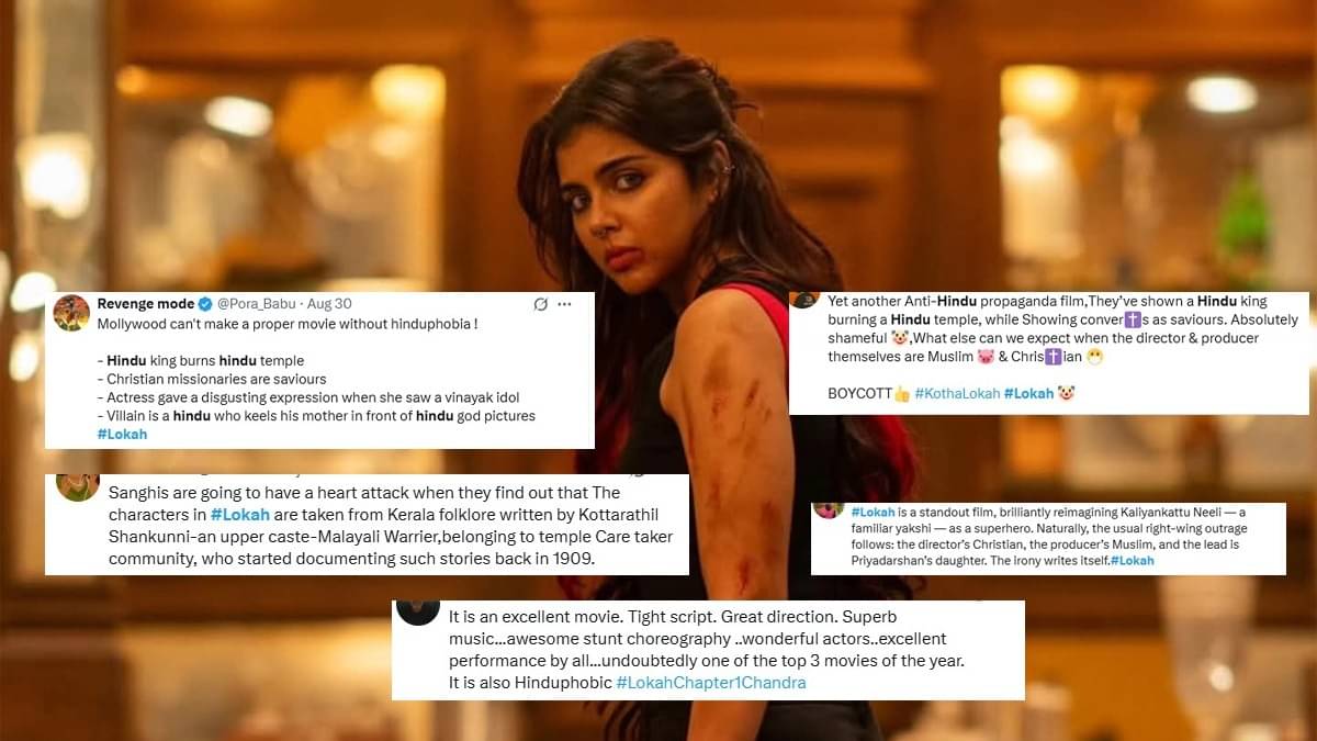 एक दर्शक ने लिखा कि कैसे एक सीन में लीड एक्ट्रेस कल्याणी के किरदार चंद्रा ने “भगवान गणेश की मूर्ति देखकर घिनौना एक्सप्रेशन दिया” है। दूसरे यूजर ने पोस्ट किया कि फिल्म ‘लोका’ में विलेन एक हिंदू है जो हिंदू भगवान की तस्वीरों के सामने अपनी मां को मारता है।