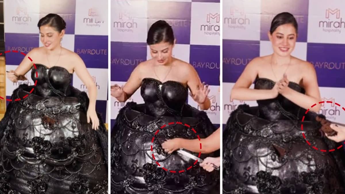 जी हां, उर्फी की ड्रेस देखने पर ऐसा लगेगा जैसे आप कोई असली अटायर देख रहे हैं। लेकिन असलियत तब सामने आई, जब उर्फी अपनी ड्रेस में से केक काटकर खाने लगीं। वीडियो में देखा जा सकता है कि उर्फी जावेद अपनी यूनिक ड्रेस में पैपराजी को पोज दे रही हैं। लेकिन अचानक एक लड़की चाकू लेकर उनका ड्रेस काटने लगी, जिसने सभी को चौंका दिया।