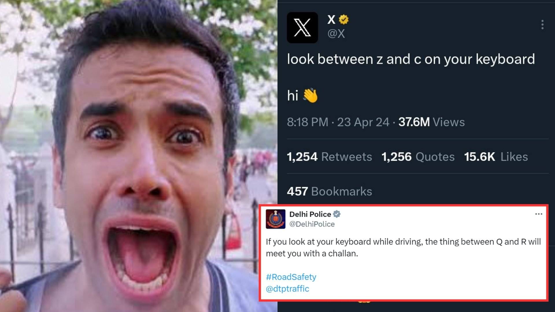 दिल्ली पुलिस ने वायरल ट्रेंड पर एक मजेदार पोस्ट किया। दिल्ली पुलिस के एक्स (ट्विटर) अकाउंट से एक पोस्ट किया गया, जिसमें लिखा कि अगर आप ड्राइविंग करते हुए कीबोर्ड पर देखेंगे तो आपको Q और R के बीच जो है वो चालान के साथ मिलेंगे। अगर आप कीबोर्ड पर Q और R के बीच देखते हैं तो यहां WE बनेगा। यानी उनका कहना है कि ऐसा करने पर हम आपको चालान के साथ मिलेंगे।