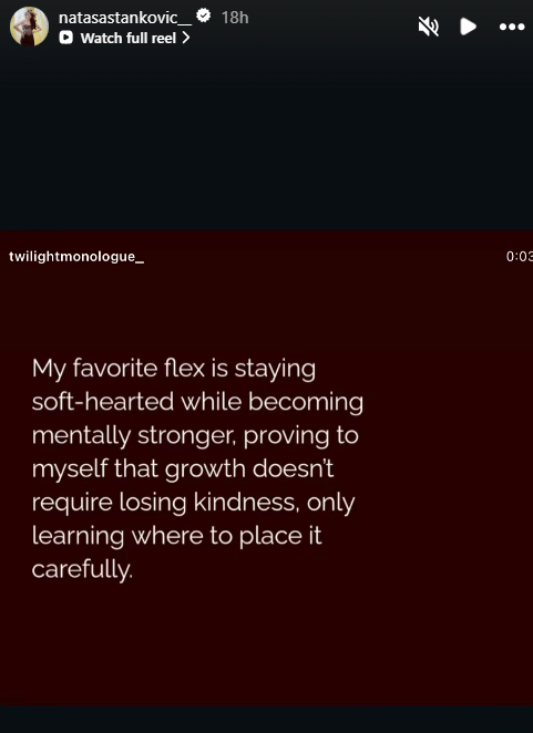 नताशा ने अपने लेटेस्ट पोस्ट में एक वीडियो शेयर किया, जिसमें वह 'धुरंधर' के गाने पर डांस कर रही हैं। इसमें वह बोल्ड और कॉन्फिडेंट नजर आ रही हैं। इस वीडियो पर लिखा हुआ कैप्शन चर्चा में बना हुआ है।