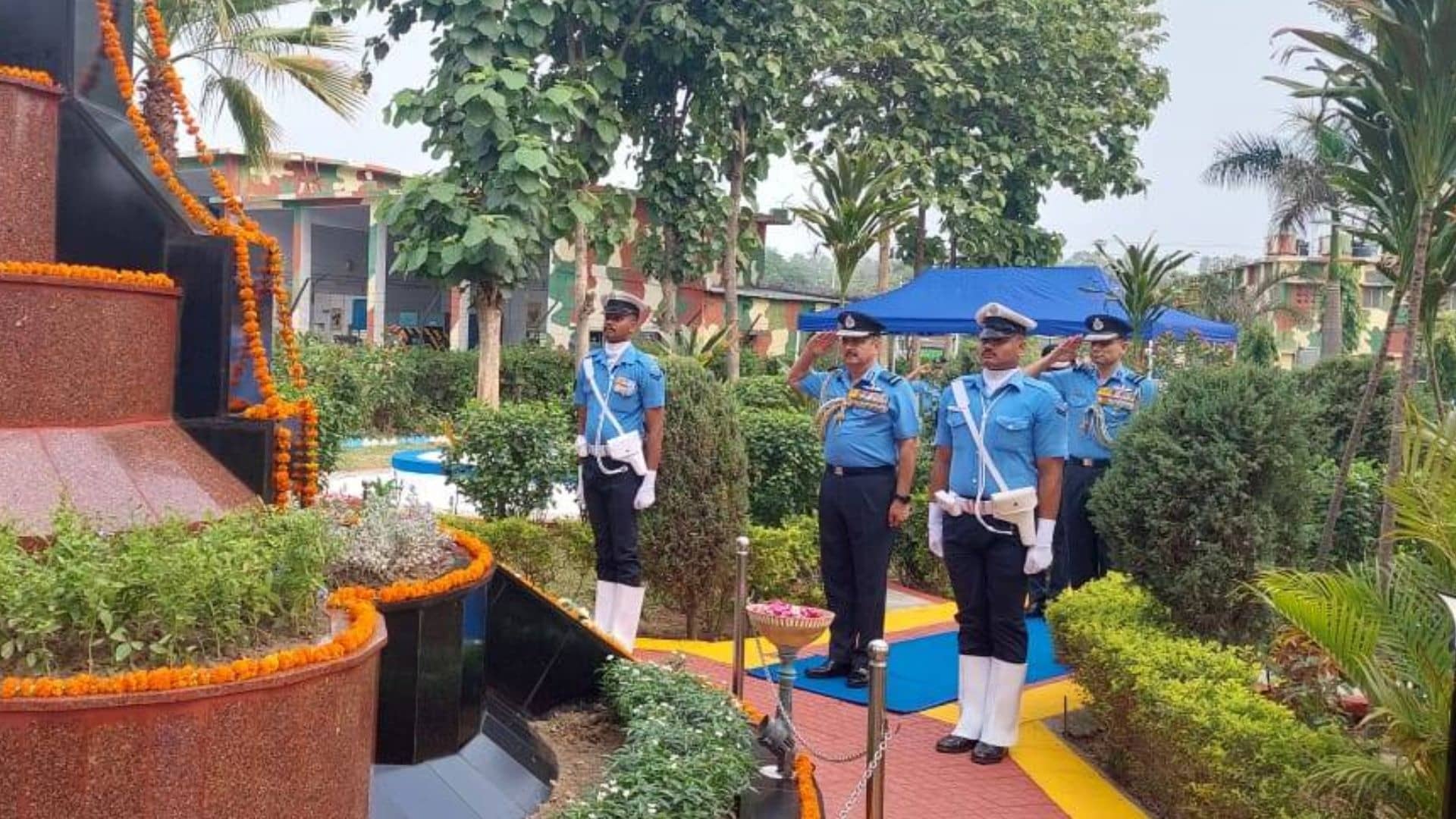 वायुसेना प्रमुख एअर चीफ मार्शल वीआर चौधरी ने राष्ट्र की सेवा में अपने प्राण न्योछावर करने वाले सभी वायु योद्धाओं को श्रद्धांजलि के रूप में शनिवार को वायुसेना स्टेशन स्थित युद्ध स्मारक पर पुष्पांजलि अर्पित की। कार्यक्रम के दौरान उन्होंने शहीदों के परिजनों को सम्मानित किया और उनसे बातचीत की। बयान में कहा गया कि इस दौरान एक शानदार एयर शो का आयोजन किया गया जिसमें आकाश गंगा टीम, जगुआर, एसयू-30 एमकेएल और राफेल लड़ाकू विमानों ने भाग लिया।
