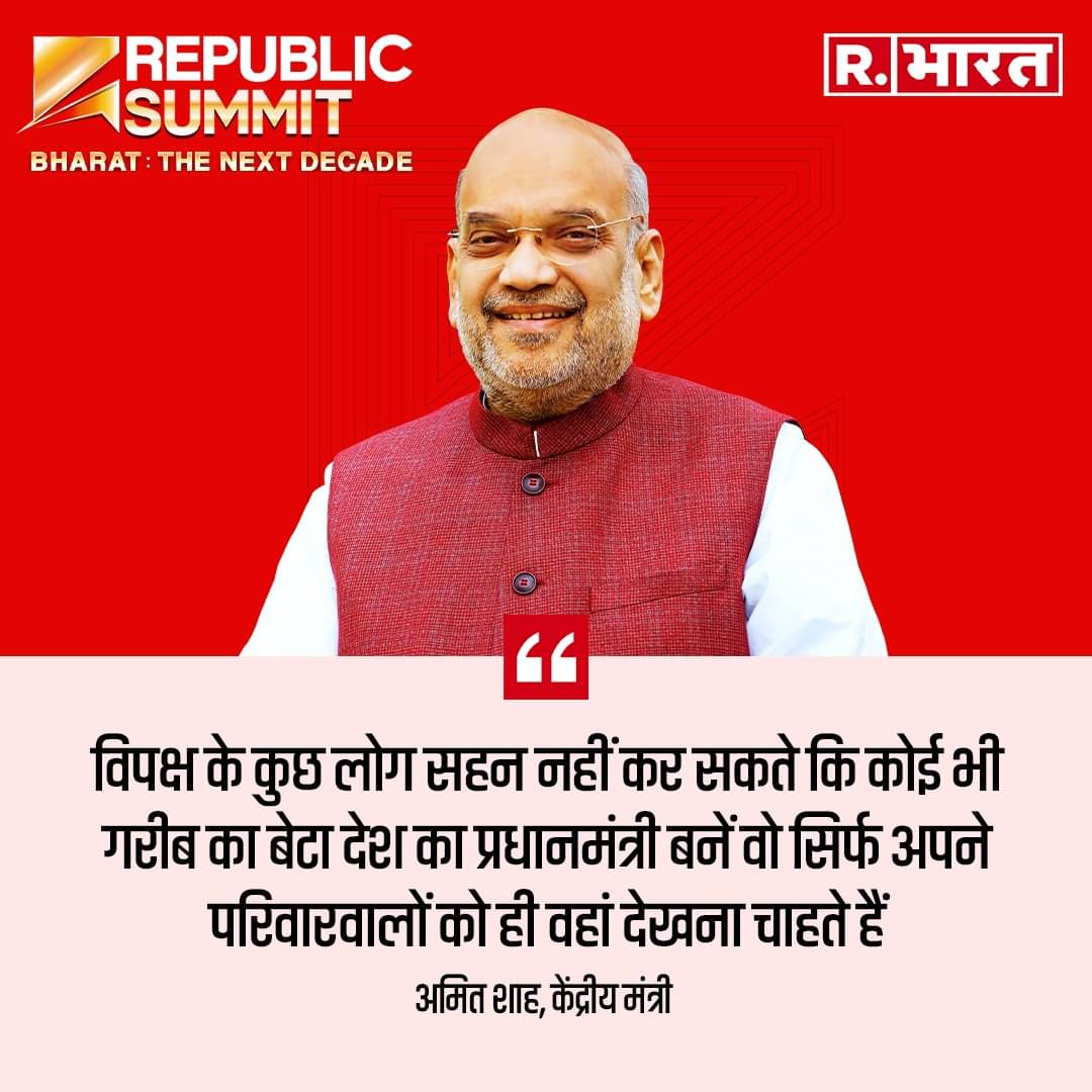 अमित शाह ने रिपब्लिक समिट 2024 में आगे कहा कि परिवारवादी कल्याण की राजनीति को कभी नहीं समझेंगे। परिवारवादियों को केवल अपने परिवार की चिंता है। परिवारवादी असहिष्णु हैं कि एक चायवाला प्रधानमंत्री कैसे बन गया।