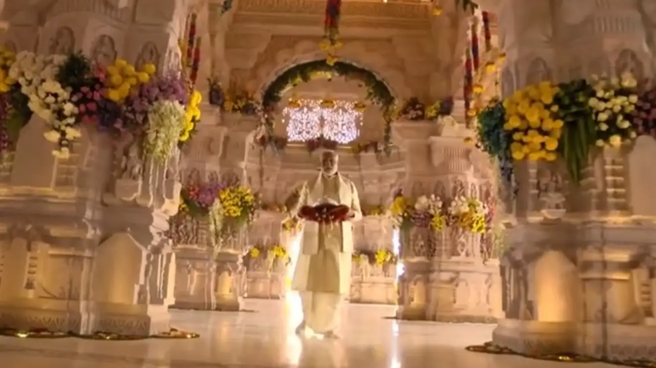 नेपथ्य में शंखनाद के साथ पीएम ने मंदिर परिसर में प्रवेश किया। सुनहरे रंग का कुर्ता और सफेद रंग के पारम्परिक परिधान में दिखे। माथे पर तिलक और हाथों में पूजा की सामग्री ले गर्भ गृह में प्रवेश किया। प्रधानमंत्री ने 11 दिन का अनुष्ठान भी किया। उन्होंने सादे जीवन का पालन किया। उन जगहों पर पूजा अर्चना की जहां पर श्री राम के पद पड़े थे। केरल पहुंचे प्रधानमंत्री ने पूजा के दौरान पारंपरिक परिधान 'मुंडू' (धोती) और 'वेष्टि' (सफेद शॉल) धारण किए हुए थे।