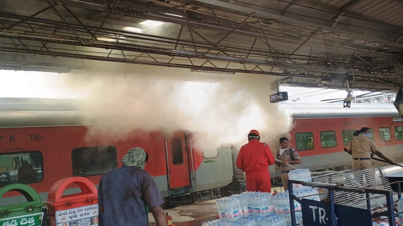 विशाखापत्तनम रेलवे स्टेशन पर बड़ा हादसा हुआ है। ट्रेन की तीन बोगियों में आग लग गई, जिससे प्लेटफॉर्म पर धुआं फैल गया।
