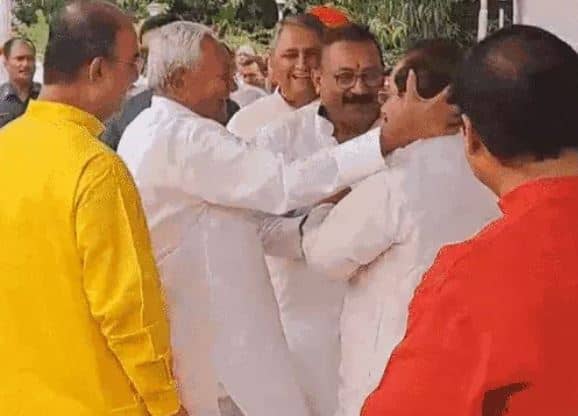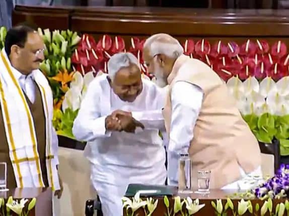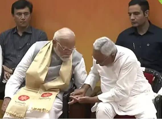 पहली बार नहीं है जब ये दो दिग्गज इतने बेलौस दिखे हैं। हाल की बात करें तो तीसरी बार एनडीए की ओर से पीएम पद घोषित किए जाने के अवसर पर भी ऐसा ही कुछ दिखा था। कैमरे ने उन मोमेंट्स को कैप्चर किया था। इसमें नीतीश कुछ झुकते तो पीएम मोदी उन्हें ऊपर उठाते दिखे थे।