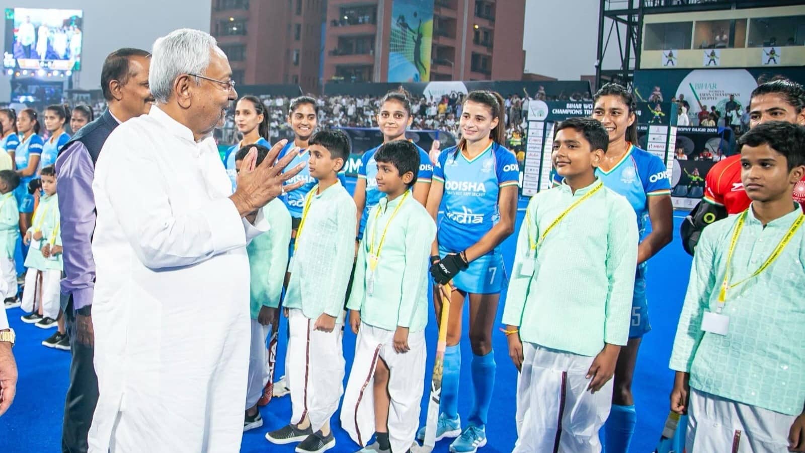 बिहार के मुख्यमंत्री नीतीश कुमार ने सोमवार को बिहार के नालंदा जिले के राजगीर में नव निर्मित हॉकी स्टेडियम में महिला एशियाई चैंपियन्स ट्रॉफी-2024 का उद्घाटन किया