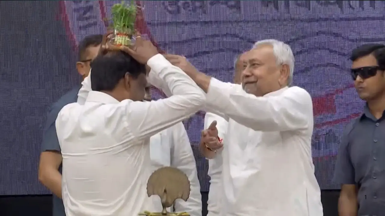 बिहार के मुख्यमंत्री नीतीश कुमार अपने व्यवहार को लेकर आए दिन चर्चा में बने रहते हैं। सार्वजनिक कार्यक्रम के दौरान वह कुछ ऐसा कर जाते हैं, जिसके बाद हर किसी की नजर उनके ऊपर होती है। ऐसा ही कुछ एक बार फिर हुआ, जब सीएम नीतीश राजधानी पटना के कृषि भवन में आयोजित नियुक्ति पत्र वितरण समारोह में पहुंचे। दरअसल, सीएम का स्वागत करने के लिए उन्हें एक गमला दिया गया। इसी गमले को लेकर मुख्यमंत्री नीतीश कुमार ने अपर सचिव एस सिद्धार्थ के सिर पर रख दिया। अब इस मामले का वीडियो सोशल मीडिया पर तेजी से वायरल हो रहा है।