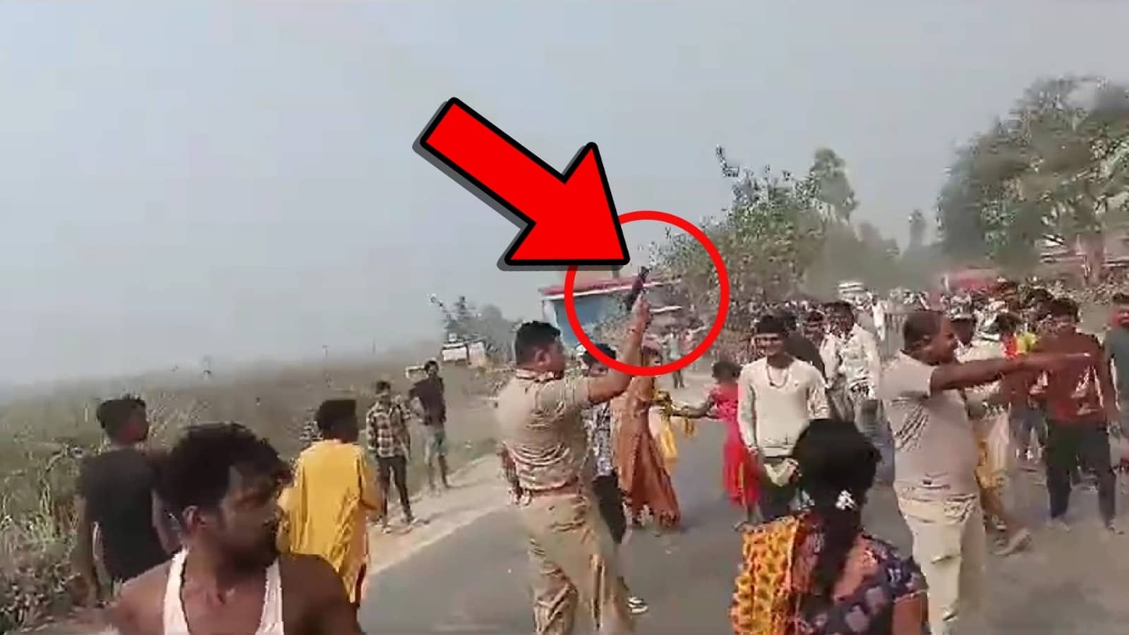 VIDEO: हवाई फायर पर भी नहीं रुकी भीड़ तो तान दी पिस्टल...दरोगा को जान बचानी पड़ी भारी!