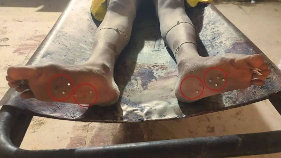 महिला के पैरों में मिली कई कील