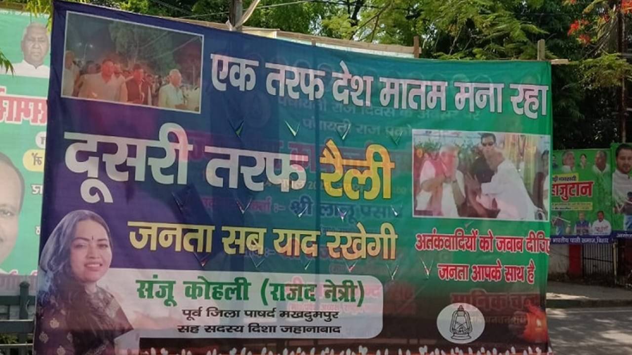 हालांकि इस आतंकी हमले के दो दिन बाद प्रधानमंत्री नरेंद्र मोदी 24 अप्रैल को मधुबनी में जिला में जनसभा को संबोधित किए गए। राजद नेत्री और पूर्व जिला पार्षद संजू कोहली की ओर से यह पोस्टर लगाया गया है। पोस्टर में स्लोगन लिखा है, एक तरफ देश मातम मना रहा है, दूसरी तरफ रैली जनता सब याद रखेगी। वहीं, पोस्टर में पीएम मोदी और नीतीश कुमार की साथ की फोटो भी लगाई गई है और फोटो के नीचे लिखा है, आतंकवादियों को जवाब दिजिए, जनता आपके साथ है।
