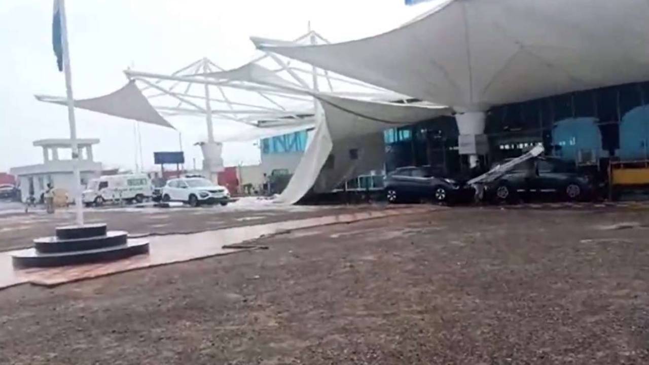 गुजरात के राजकोट में एयरपोर्ट पर पिकअप एरिया की कैनोपी गिर गई है। गुजरात के कई इलाकों में बारिश हुई है। इसी दौरान राजकोट एयरपोर्ट पर हादसा हुआ है।