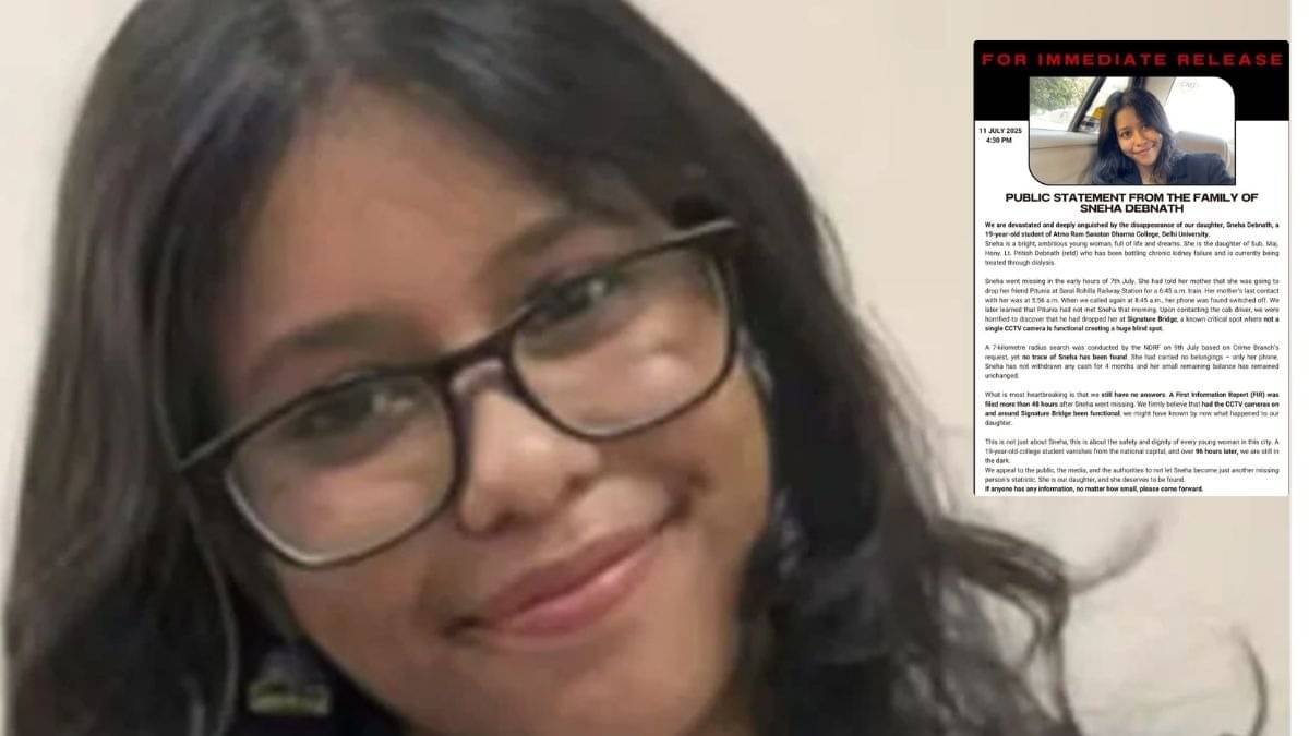 दिल्ली यूनिवर्सिटी के आत्माराम सनातन धर्म कॉलेज में पढ़ने वाली स्नेहा देवनाथ जो पिछले 7 जुलाई से लापता थी उसका शव दिल्ली के गीता कॉलोनी के फ्लाई ओवर के पास नदी में तैरता हुआ मिला है। दिल्ली पुलिस ने स्नेहा देवनाथ के शव को बरामद कर लिया है।