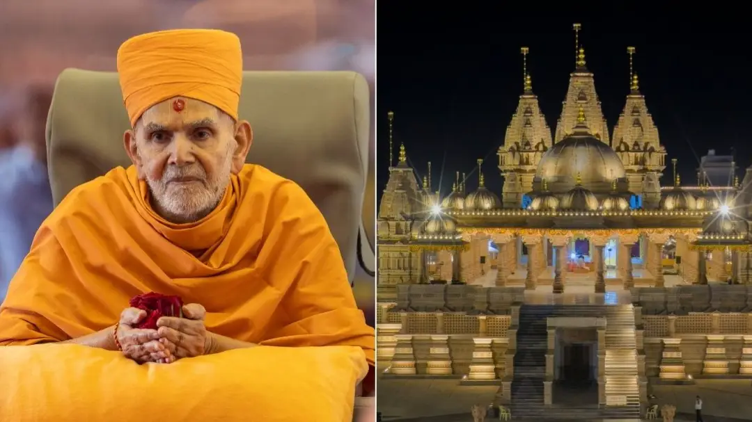नवनिर्मित स्वामीनारायण मंदिर में गुरुदेव ब्रह्मस्वरूप महंत स्वामी महाराज का फूल बिछाकर भव्य स्वागत; प्राण प्रतिष्ठा में जुटेंगे दुनियाभर के श्रद्धालु