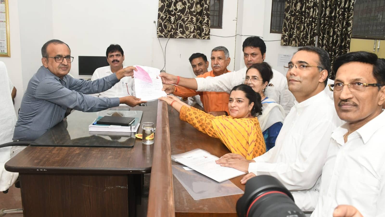 श्रुति चौधरी ने तोशाम सीट से अपना नामांकन पत्र दाखिल किया। उनके साथ उनकी मां और राज्यसभा सदस्य किरण चौधरी भी मौजूद थीं।