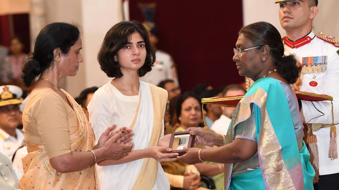 Caption Anshuman Singh: राष्ट्रपति द्रौपदी मुर्मू ने शुक्रवार 5 जुलाई 2024 को देश के 7 जवानों को मरणोपरांत सम्मान से नवाजा। इन जवानों में शहीद कैप्टन अंशुमन सिंह को मरणोपरांत कीर्ति चक्र से सम्मानित किया गया। इस सम्मान को उनकी पत्नी स्मृति और मां मंजू सिंह ने प्राप्त किया।
