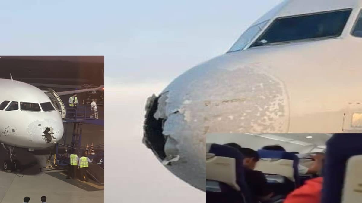 Indigo की फ्लाइट भारी बारिश के बीच आसमान में ओला वृष्टि की चपेट में गया। इसकी वजह से फ्लाइट के आगे का हिस्सा डैमेज हो गया, जिसकी तस्वीरें सामने आई।