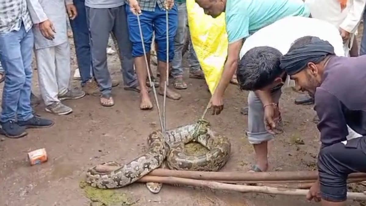 वन विभाग की अहमदपुर की टीम और ग्रामीणों ने अजगर का मुश्किल से रेस्क्यू किया। अजगर का रेस्क्यू कर वन विभाग ने उसे जंगल में छोड़ा। मिली जानकारी के मुताबिक, बारिश के सीजन में अजगर निकलने की यह सीहोर जिले में दूसरी घटना है। इससे पहले बुधनी क्षेत्र में भी एक अजगर खेत में देखा गया था।