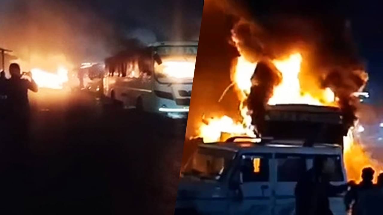गुस्साई भीड़ ने गाड़ियों में लगा दी आग