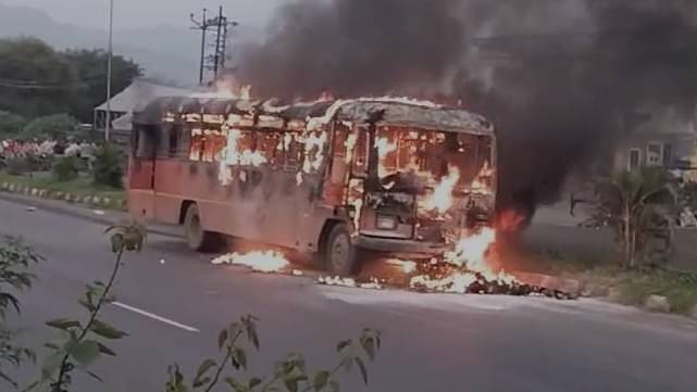 सामने आए सीसीटीवी फुटेज में एक युवक बाइक से जा रहा होता है कि तभी पीछे से एक राज्य परिवहन बस टक्कर मार देती है। फुटेज में आगे दिखा कि बस और बाइक की टक्कर के बाद भीषण आग लग जाती है। यह आग देखते ही देखते बस और बाइक को पूरी तरह से अपनी चपेट में ले लेती है।