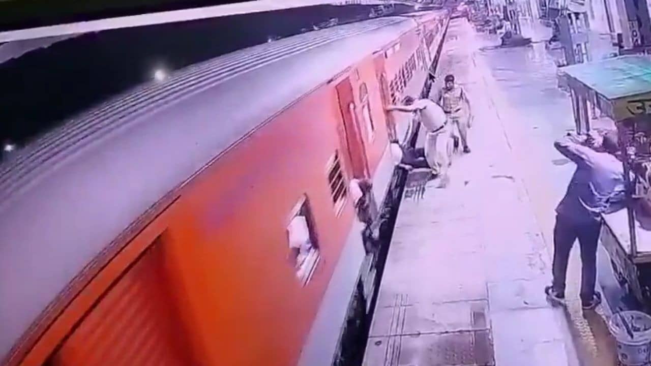 हापुड़ रेलवे स्टेशन पर एक बड़ा रेल हादसा टल गया जब चलती ट्रेन में चढ़ते वक्त एक यात्री फिसलकर गिर गया और दरवाजे पर लटकता हुआ ट्रेन के साथ घिसटने लगा। तभी मौके पर तैनात सिपाही ने अपनी जान जोखिम में डालते हुए साहसिक कदम उठाया और उस व्यक्ति को सुरक्षित बचा लिया। इस बहादुरी के चलते एक बड़ा हादसा होने से टल गया और यात्री की जान बच गई।