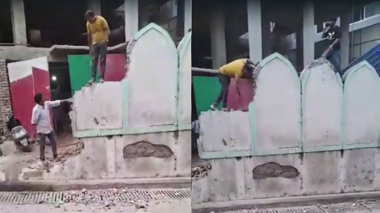 Himachal: मंडी में मस्जिद पर चला हथौड़ा, हंगामे के बाद मुस्लिम समाज खुद तोड़ने में लगा अवैध निर्माण