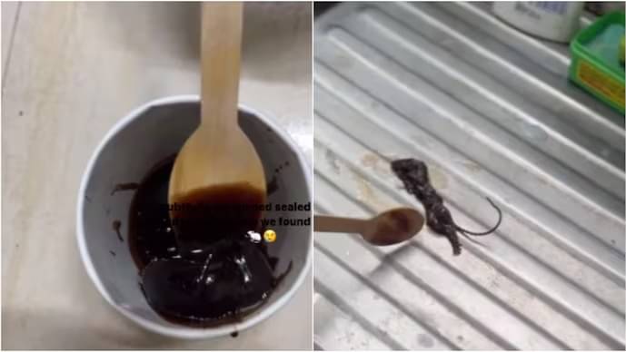 प्रमी श्रीधर नाम की युवती ने हाल ही में ज़ेप्टो के ज़रिए ऑर्डर किए गए हर्षे चॉकलेट सिरप की कहानी सुनाई। उन्होंने बताया कि कैसे पहले चमचे पर बाल दिखे फिर बोतल को गिलास में उड़ेला तो मरा हुआ चूहा निकला। देखें विडियो