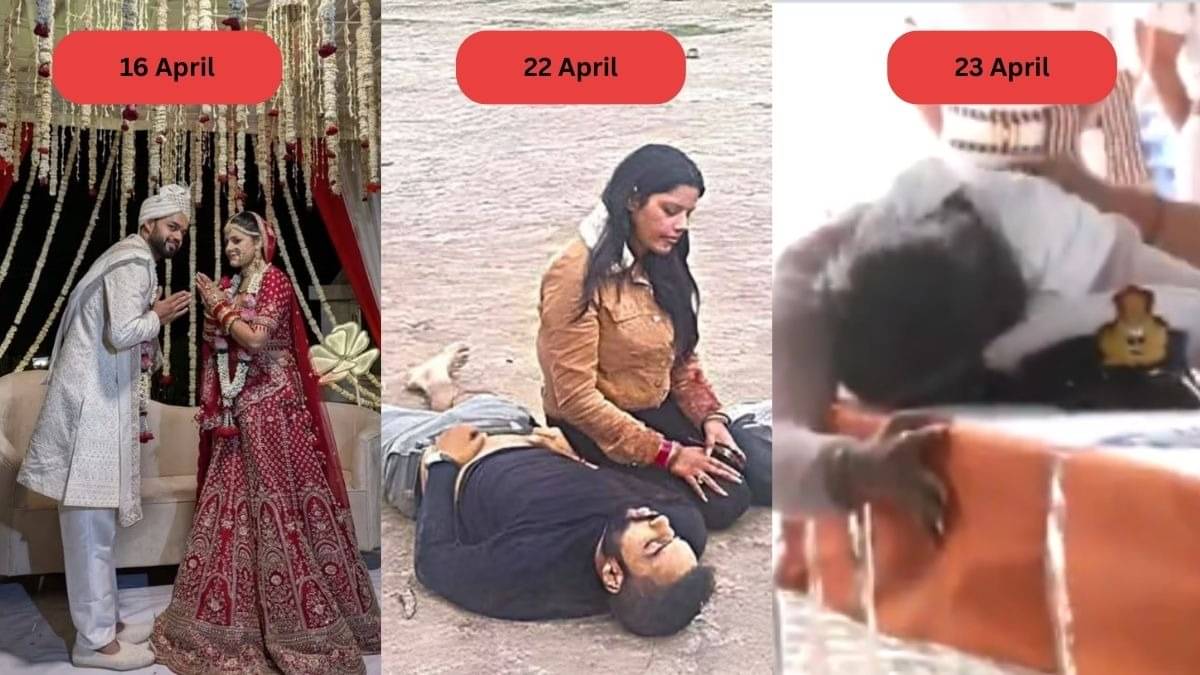 पहलगाम में मंगलवार की दोपहर करीब 2.30 बजे बड़ा आतंकी हमला हुआ। सेना की वर्दी पहने आतंकियों ने बैसरन इलाके में घुड़सवारी कर रहे पर्यटकों पर गोलियां बरसाईं। आतंकियों ने पहले नाम पूछा और उसके बाद उन्हें गोलियों से भून डाला। हमले में मरने वालों में कुछ विदेशी भी शामिल हैं। इस हमले में 28 लोगों की मौत हो गई, जबकि दर्जनभर से ज्यादा लोग घायल बताए जा रहे हैं। इस घटना को लेकर हर भारतीय का खून खौल रहा है। इन सबके बीच उस नई नवेली दुल्हन की तस्वीर ने हर किसी की आंख नम कर दीं जिसकी आतंकी हमले से महज 6 दिन पहले ही शादी हुई थी।