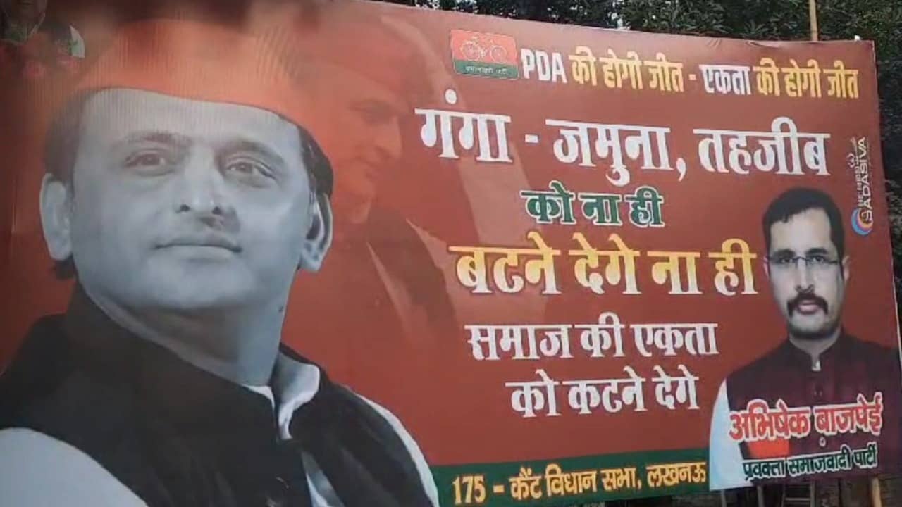 लखनऊ में समाजवादी पार्टी कार्यालय के बाहर ये पोस्टर समाजवादी पार्टी के प्रवक्ता अभिषेक बाजपेई की ओर से लगाया गया है। नीचे उनकी भी तस्वीर इस पोस्टर में लगी है।