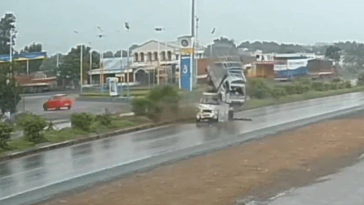 पिकअप वैन बॉल की तरह उछल कर गिरी