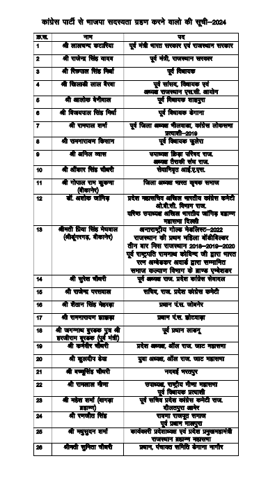 एमपी के बाद पड़ोसी राज्य राजस्थान में भी कांग्रेस को जोरदार झटका लगा है। करारा! उसके 3 पूर्व मंत्रियों समेत 32 ने पार्टी छोड़ भाजपा का दामन थाम लिया है।