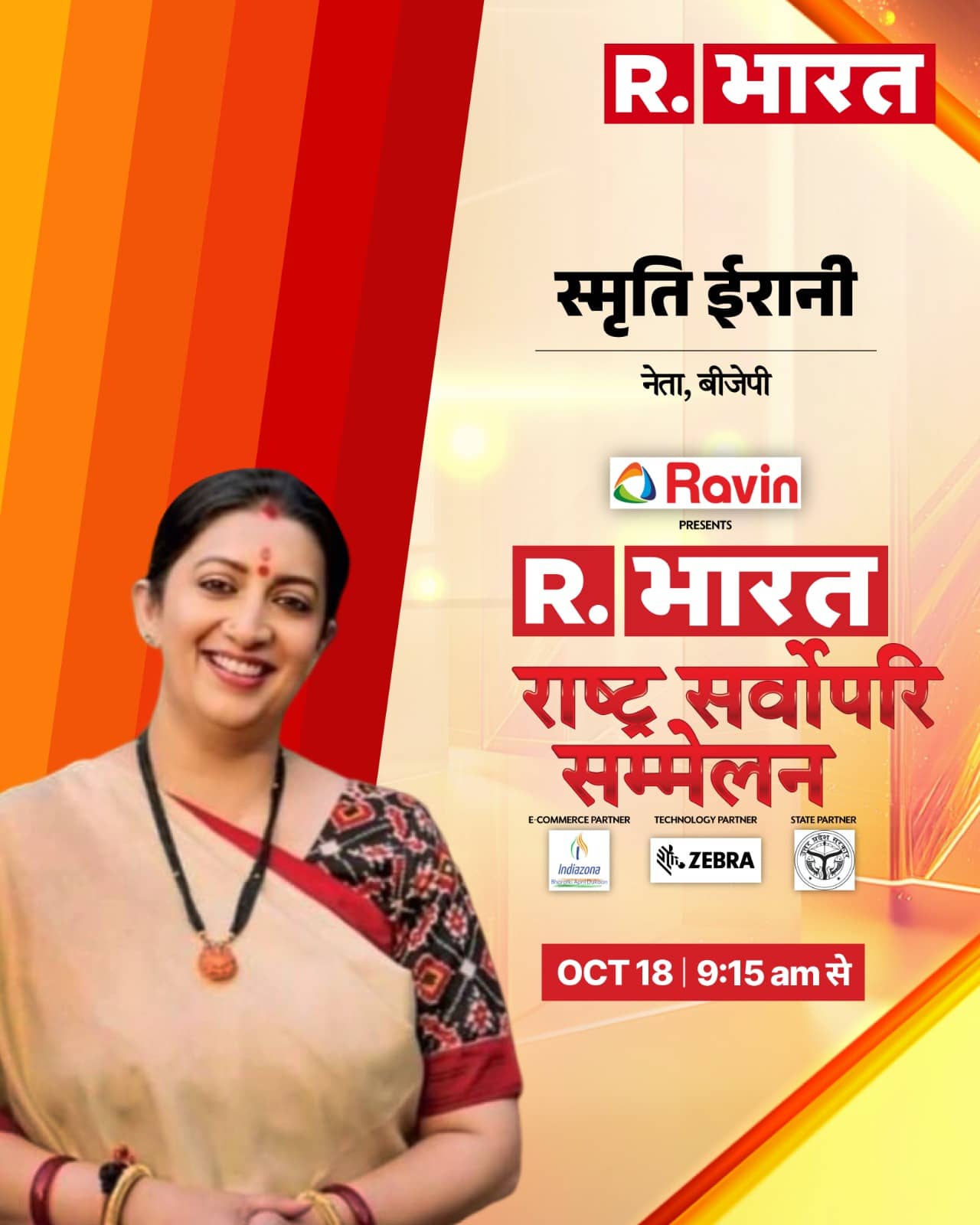 R. Bharat Summit 2024: देश का सबसे बड़ा न्यूज इवेंट रिपब्लिक भारत समिट-2024 शुक्रवार, 18 अक्टूबर को दिल्ली में होने जा रहा है। यह मंच राजनीति, खेल और मनोरंजन जगत के दिग्गजों से सजा होगा। इस बार के समिट को 'राष्ट्र सर्वोपरि सम्मेलन (Rashtra Sarvopari Sammelan)' के नाम से जाना जाएगा। भारत के नंबर 1 न्यूज चैनल ‘रिपब्लिक भारत’ द्वारा हर साल सजने वाला यह सबसे बड़ा न्यूज इवेंट एक बार फिर सज रहा है। R. भारत समिट अलग-अलग क्षेत्र के दिग्गजों से गुलजार होगा। राजनीति के धुरंधरों से रिपब्लिक भारत वो सीधे सवाल पूछेगा, जिसका सीधा सरोकार आपसे है।