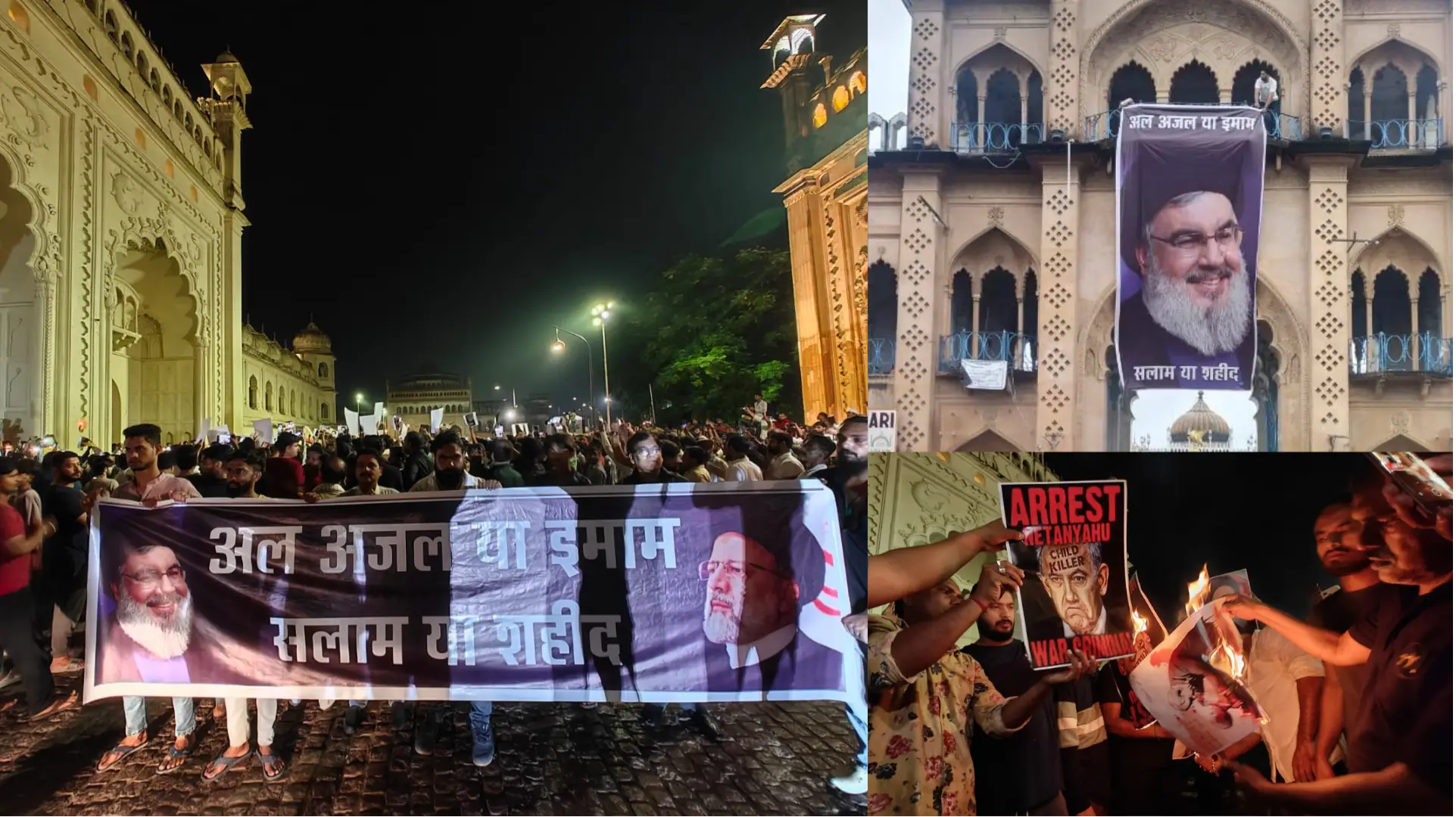 उत्तर प्रदेश के लखनऊ में हिजबुल्लाह के चीफ नसरल्लाह के समर्थन में गुपचुप तरीके से मार्च निकाला गया। इजरायली पीएम नेतन्याहू के पोस्टर को जलाया गया।