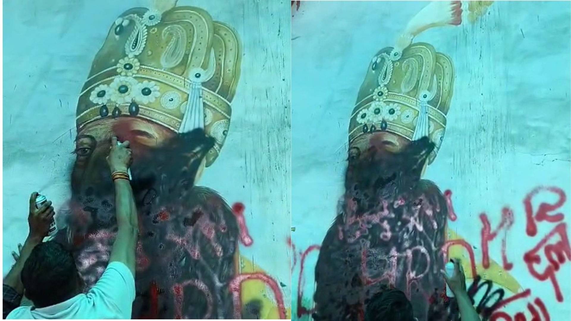 BIG BREAKING: गाजियाबाद रेलवे स्टेशन पर बनी औरंगजेब की पेंटिंग पर पोती कालिख, हिंदू रक्षा दल ने लगाए जय श्रीराम के नारे