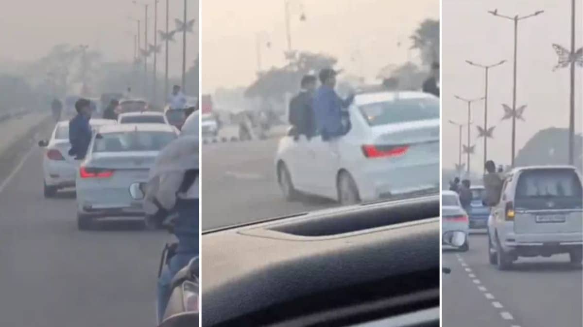 वीडियो में साफ-साफ दिख रहा है कि सड़क पर दौड़ते वाहनों के बीच कारों से युवक हुड़दंग कर रहे हैं, कारों को लहरा रहे हैं, बाकी कारों को गलत तरीके से ओवरटेक कर रहे हैं, जिससे दूसरे वाहनों से टक्कर हो सकती थी। इस दौरान मोबाइल से वीडियो बना लिया गया, राहगीर उनसे बचने की कोशिश कर रहे हैं। वीडियो में दिख रहा है कि युवकों ने ब्रेजा, एक टाटा स्ट्रीम, डिजायर और होंडा अमेज कार से स्टंट कर रहे हैं।
