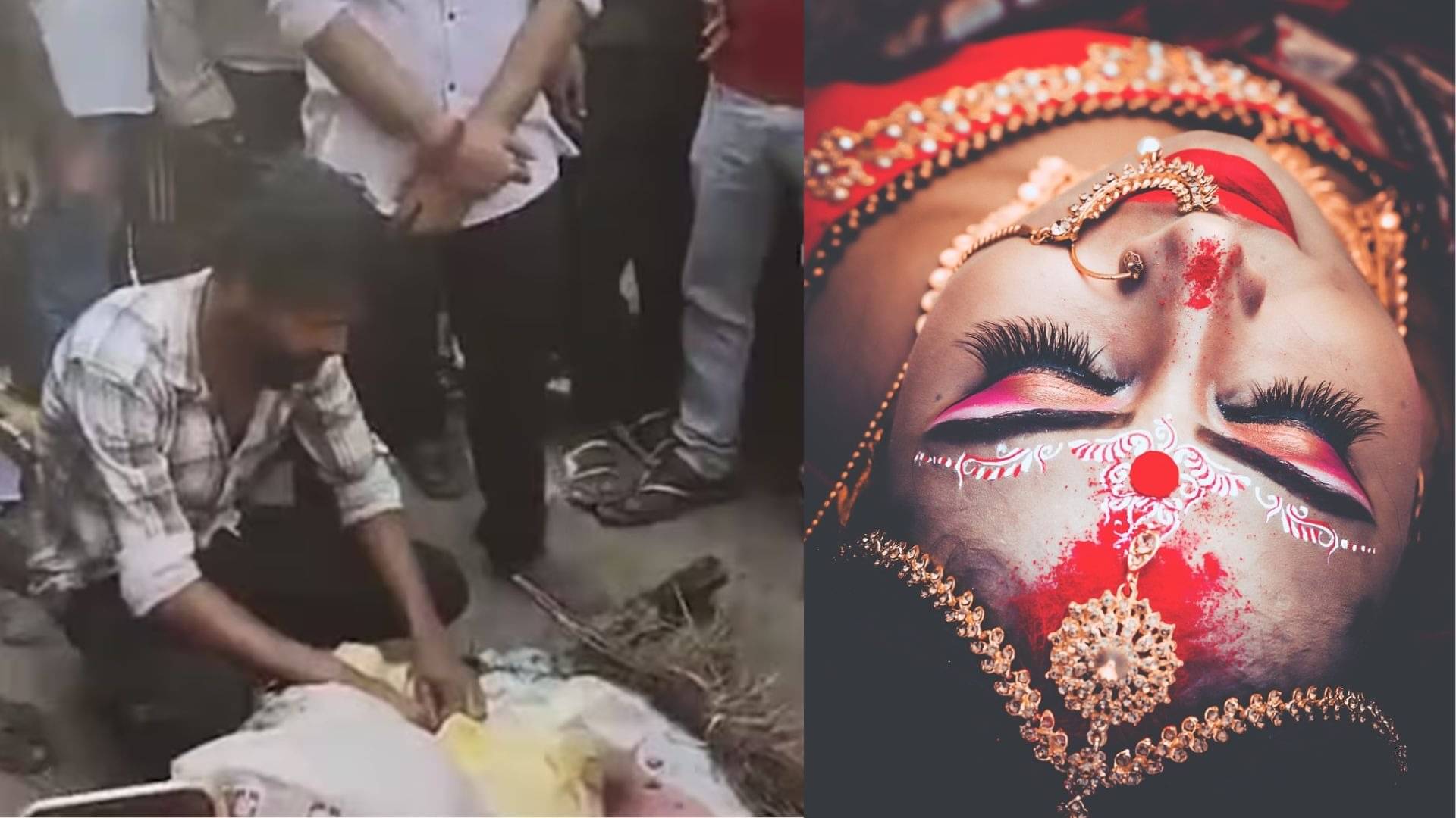 अंतिम संस्कार के लिए बुलाए गए पंडित जी शादी का मंत्र पढ़ने लगे। शव के साथ हो रही शादी में मंगल गीत की जगह महिलाएं बिलख रही थी मौके पर उमड़ी भीड़ के आंखों से आंसू के सैलाब बह रहे थे। घटना का वीडियो तेजी से वायरल है। वैदिक मंत्रों के बीच प्रेमी ने प्रेमिका की शव से शादी की। उसकी मांग में सिंदूर भरा। युवती की अर्थी सुहागन के रूप में उठी। इसके बाद प्रेमी ने अंत्येष्टि स्थल पर पहुंच प्रेमी ने पति के रूप में मुखाग्नि देकर अंतिम संस्कार किया। थानाध्यक्ष निचलौल, अखिलेश वर्मा ने कहा कि एक लड़की द्वारा आत्महत्या करने की सूचना मिली थी। शव का पंचनामा कर पोस्टमार्टम के लिए भेजा गया और बाद में परिवार को सौंप दिया गया। मौत के कारणों का पता अभी नही चल सका है। अग्रिम कार्यवाही की जा रही है।
