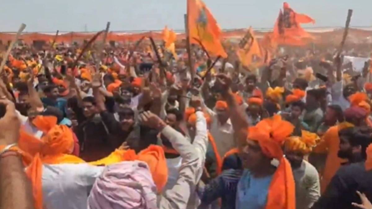 भगवा झंडे, हाथों में तलवारें और लोगों का हुजूम; राणा सांगा पर विवाद के बीच करणी सेना ने आगरा में दिखाई ताकत, Video