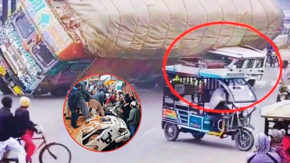 पीछे से आ रहे ट्रक चालक ने ये देख ब्रेक लगाने की कोशिश की। बोलरो को बचाने के लिए ट्रक रुका भी, मगर डिवाइडर से टकराकर पलट गया। हैरानी की बात ये रही कि ट्रक उसी बोलेरो गाड़ी पर जा पलटा और बोलेरो गाड़ी पूरी तरह पिचक गई।