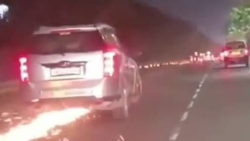 सड़क पर चिंगारियां उड़ती रही नहीं रुकी SUV