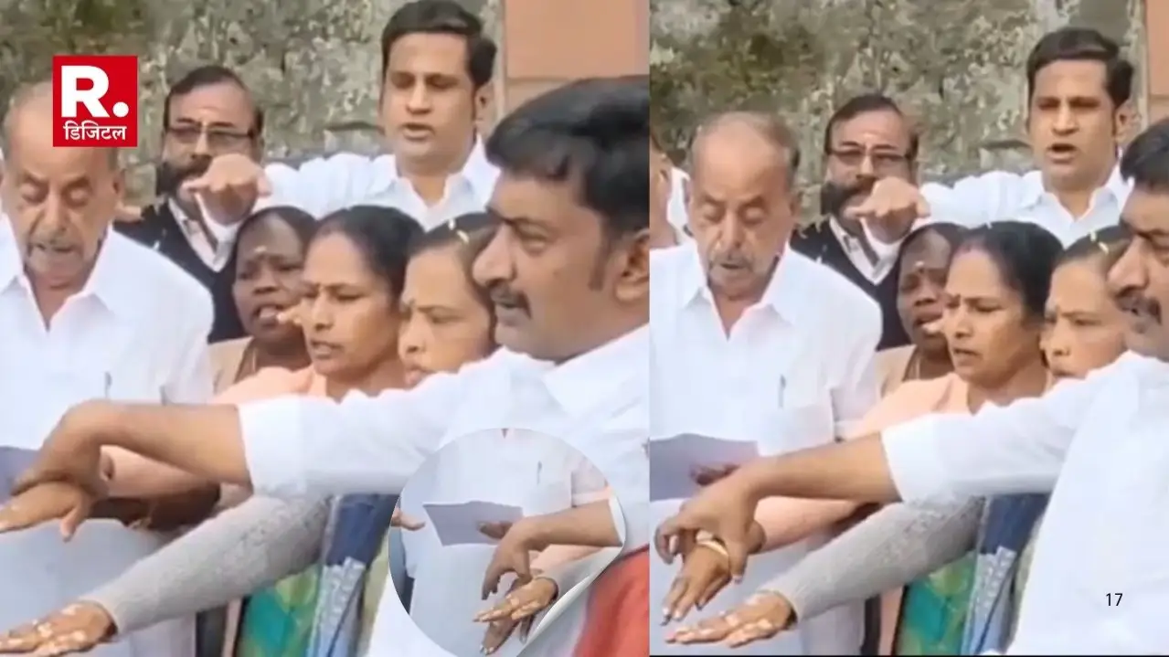 तमिलनाडु में लगातार हिंदी भाषा को लेकर विरोध जारी है। तमिलनाडु की स्टालिन सरकार लगातार हिंदी को लेकर ये दावा कर रही है कि केंद्र सरकार ये भाषा थोपने की कोशिश कर रही है। भाषा थोपने के आरोप के बीच डीएमके के एक नेता का शर्मनाक वीडियो सामने आया है। वीडियो में डीएमके नेता हिंदी भाषा के खिलाफ शपथ लेते नजर आ रहे हैं, लेकिन तभी डीमके के पार्षद जाकिर हुसैन ने अपनी ही पार्टी की महिला के साथ ऐसा शर्मनाक व्यवहार किया, जिसकी जितनी आलोचनी की जाए, कम है।