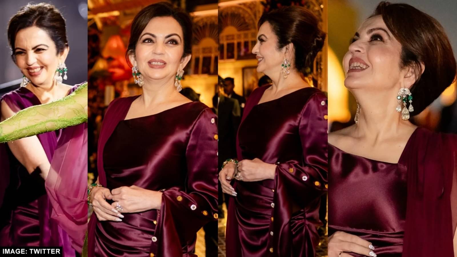 जी हां, बेटे के प्री वेडिंग इवेंट में नीता अंबानी ने डार्क पर्पल कलर का लॉन्ग गाउन कैरी किया था। जिसमें वह बेहद खूबसूरत लग रही थीं। इसके साथ उन्होंने बालों के लिए हाई बन हेयर स्टाइल चुना था। नीता अंबानी ने कानों में ग्रीन और व्हाइट कलर के ईयररिंग्स के साथ हाथों में ग्रीन कलर का ब्रेसलेट और रिंग पहनी थी। उन्होंने काफी मिनिमल ज्वेलरी और सिंपल मेकअप के साथ अपने इस वेस्टर्न आउटफिट लुक को पूरा किया था। नीता अंबानी का ये वेस्टर्न लुक सोशल मीडिया पर काफी पसंद किया जा रहा है।